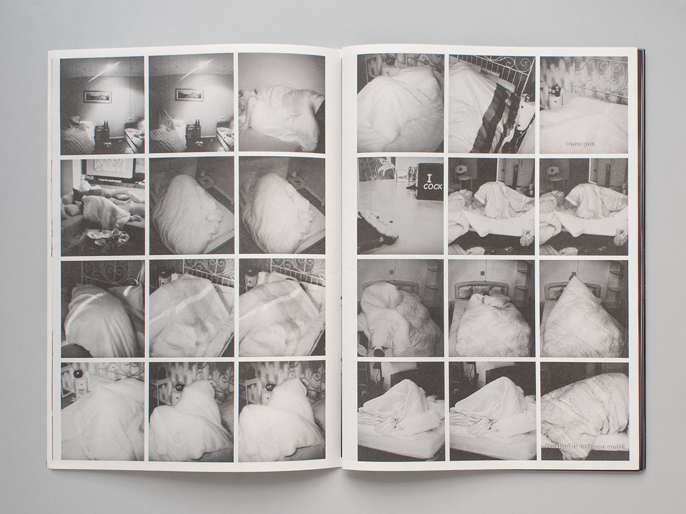 “Sorvolando il paesaggio della post-fotografia, con l’estetica kitsch e pervasiva della messa in scena del privato nei reality show, i fogli sciolti del libro d’artista di Eleonora Calvelli, offrono un intrigante punto di osservazione dello sviluppo dell’industria culturale. La raccolta di stills in bianco e nero dei momenti d’intimità tra le lenzuola di una serie televisiva britannica (Geordie Shor), insieme all’esplosione di colore fuori fuoco del fulcro centrale, con gli scontri fisici tra le ragazze di un reality show americano (Bad Girls Club), estende l’indagine di uno dei territori privilegiato delle strategie di marketing, al modo in cui colonizzano la comunicazione di massa e il nostro rapporto con i media.”