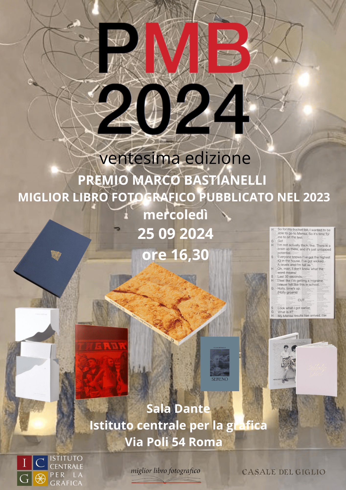 Giuria: Maria Francesca Bonetti, storica dell’arte e della fotografia; Mariella Boccadoro, responsabile libreria biblioteca di OF, Officine Fotografiche Roma; Silvia Bordini, storica dell’Arte; Davide Di Gianni stampatore professionista; Benedetta Donato, Curator, writer and editor, Fausto Giaccone fotografo e fotoreporter; Simona Marani, ricercatrice, autrice, photo editor e ghostwriter; Adele Marini, curatrice, direttrice dello Studio Bibliografico Marini; Rosy Santella giornalista e photo editor di Internazionale; Gabriele Stabile artista e fotografo; Michele Palazzi fotografo, coordinatore accademico RUFA; Alessia Tagliaventi, Editor, Photo Editor e Docente di Storia della Fotografia. Presieduta da Elisabetta Portoghese Bastianelli con Tommaso Bastianelli;