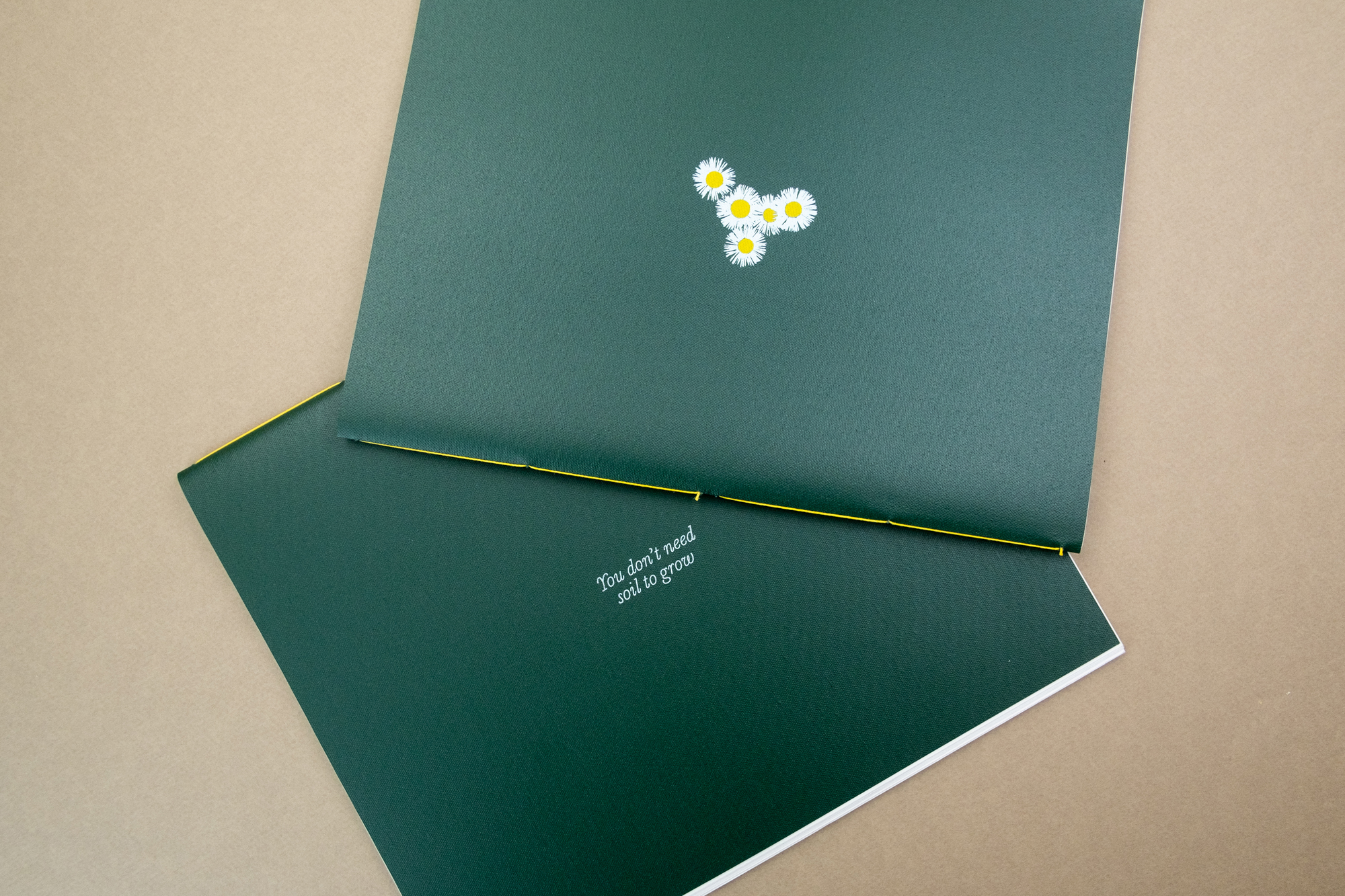 A completare l’oggetto-libro, una sopraccoperta a due colori con stampa a secco avvolge l’intero blocco, coprendo il dorso cucito e contribuendo a costruire un’identità visiva forte, in linea con il contenuto.