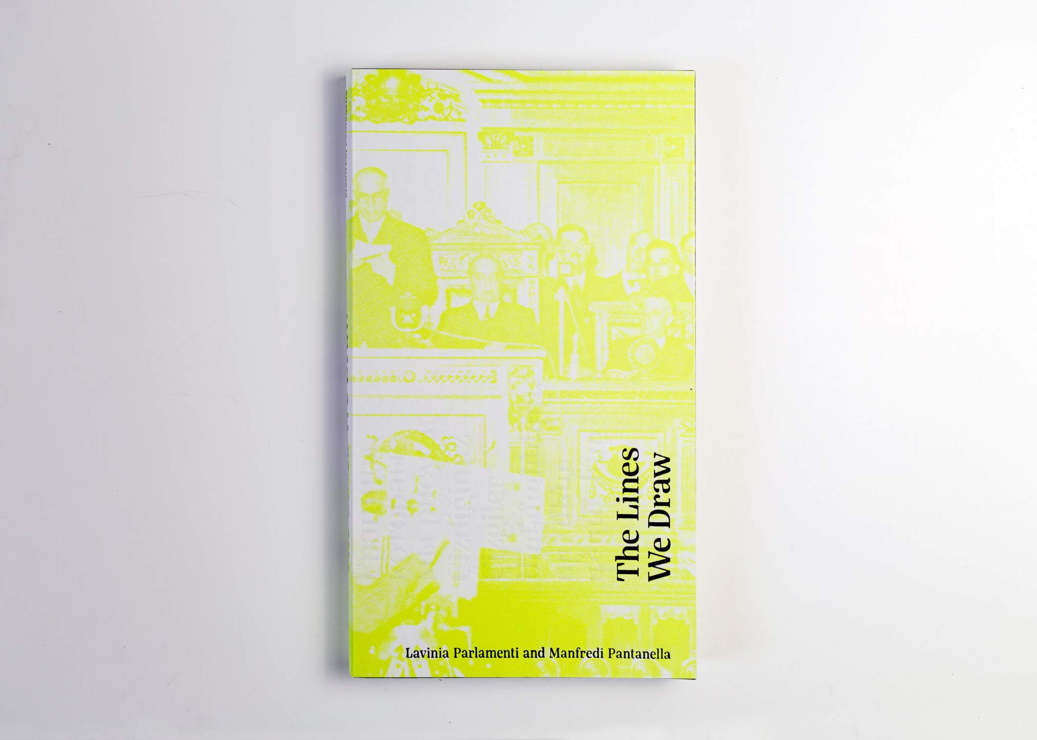 Il libro The Lines We Draw indaga i fattori che oggi, in un’epoca di crescente fluidità sociale e linguistica, continuano a determinare l’identità di un paese e del suo popolo. Attraverso un viaggio immaginario in territori reali, il progetto solleva interrogativi sul concetto di autodeterminazione e nazionalità, in un momento storico in cui ogni tipo di confine viene ridefinito e reso sempre più ibrido. La forma editoriale del volume rispecchia pienamente queste tematiche: un formato verticale, morbido e flessibile, evoca visivamente l’idea di trasformazione e adattabilità. Nonostante l’uso di fold-out — che rendono la fruizione complessa e a tratti ostile — l’opera risulta coerente e ben strutturata. L’introduzione include contenuti cartografici e descrittivi, con il titolo presente nel frontespizio e successivamente ripreso in copertina, impaginato ortogonalmente rispetto alla direzione di lettura, rompendo la linearità del formato tradizionale. L’impaginazione adotta una logica quasi ipertestuale, evitando una netta separazione tra testo e immagine, favorendo così una lettura immersiva, stratificata e simbiotica. Una linea di navigazione guida il lettore attraverso le sezioni del libro, mantenendo costante l’orientamento all’interno della struttura. Il volume si apre e si chiude nello stesso modo: con due segnature testuali stampate su fondo lime che accolgono il corpo centrale dell’opera.